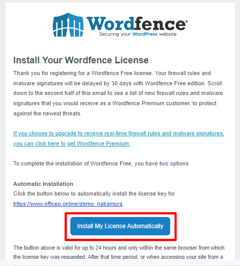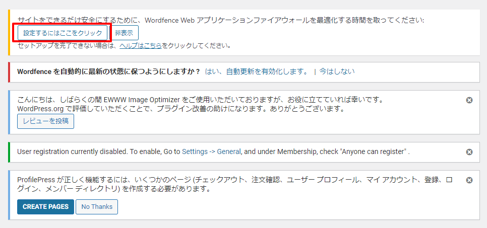 ダッシュボード→プラグインから、Wordfence Securityの項目に「無効化」が表示されていれば設定完了です。